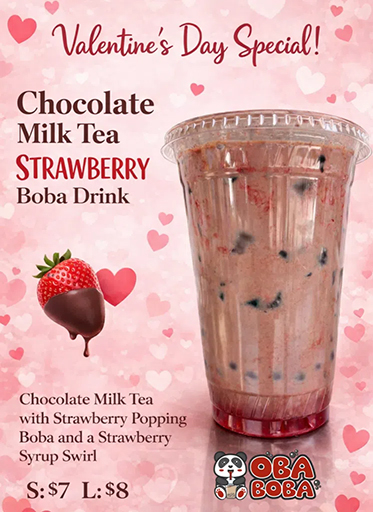 Sweeten the day with a Chocolate Milk Tea Strawberry Boba, a festive treat made for Valentine’s indulgence.